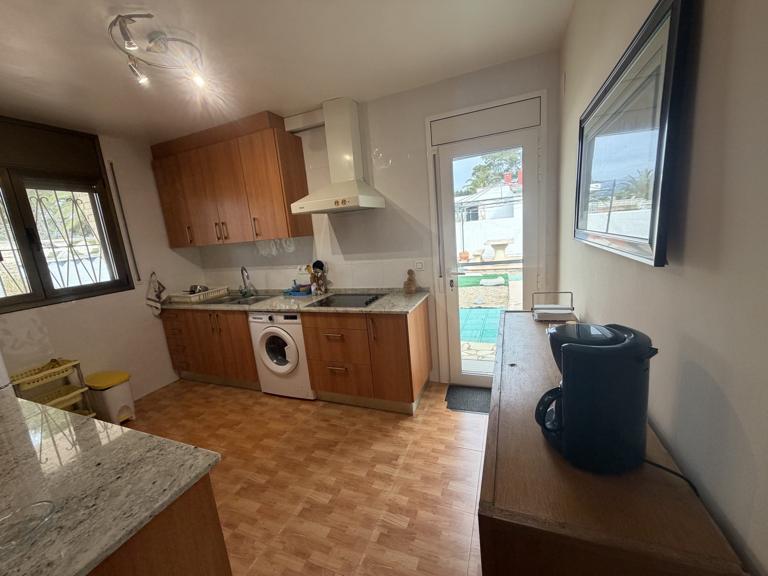 • amplia cocina independiente totalmente equipada con salida a jardín privado